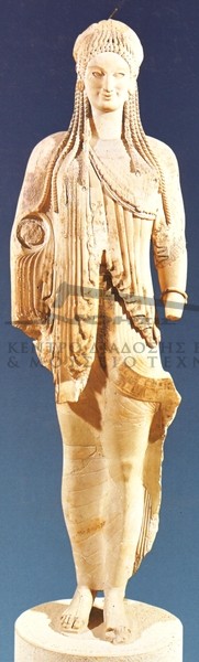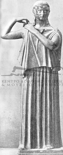 Χαρακτηριστικό ένδυμα της αρχαϊκής περιόδου ήταν και το λεγόμενο λοξό ιμάτιο από το 700 π.Χ. περίπου και εξής, γνωστό από τις αρχαϊκές Κόρες της Ακρόπολης. Το ιμάτιο ήταν ένα μακρύ ύφασμα που το περνούσαν κάτω από την αριστερή μασχάλη, το τύλιγαν γύρω από το στήθος και την πλάτη και το κούμπωναν πάνω από το δεξιό βραχίονα. Από την άλλη πλευρά έπεφτε ανοιχτό προς τα κάτω.Το ιμάτιο μπορούσε επίσης να στερεώνεται συμμετρικά και να πέφτει ελεύθερο στην πλάτη, με τις δύο άκρες του που περνούσαν πάνω από τους ώμους προς τα εμπρός, να κρέμονται προς τα κάτω (ΕΙΚ. 19) ή πάλι να τυλίγεται γύρω από τους γοφούς ή να καλύπτει τους γοφούς και η μία άκρη του να περνά επάνω από την πλάτη στον αριστερό ώμο και να πέφτει ελεύθερα προς τα μπρος. Το ιμάτιο φοριόταν από άντρες και γυναίκες.
