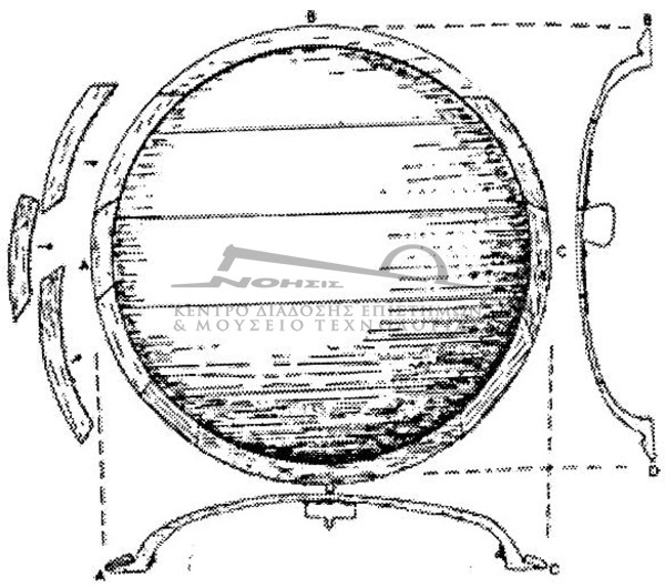 Τεχνολογία , 2ο Διεθνές Συνέδριο, Πρακτικά , Αθήνα 2006 Σχεδιαστική αναπαράσταση του ξύλινου σώματος της ασπίδας του Μ.Βατικανού. |