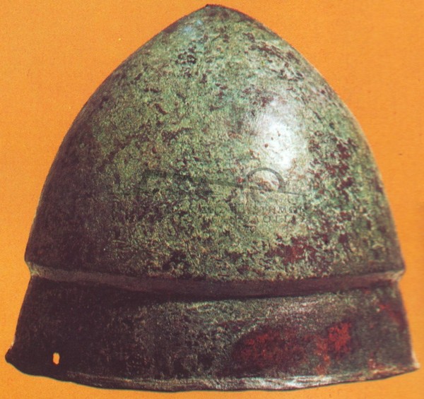 | Ιστορία Ελληνικού Έθνους, Κλασσικός Ελληνισμός(2) , 203, Τόμος Γ2, Εκδοτική Αθηνών 2000 Κράνος, αρκετά απλό, σε σχήμα ανεστραμμένου κώνου. Αθήνα,Εθνικό Αρχαιολογικό Μουσείο. | ||