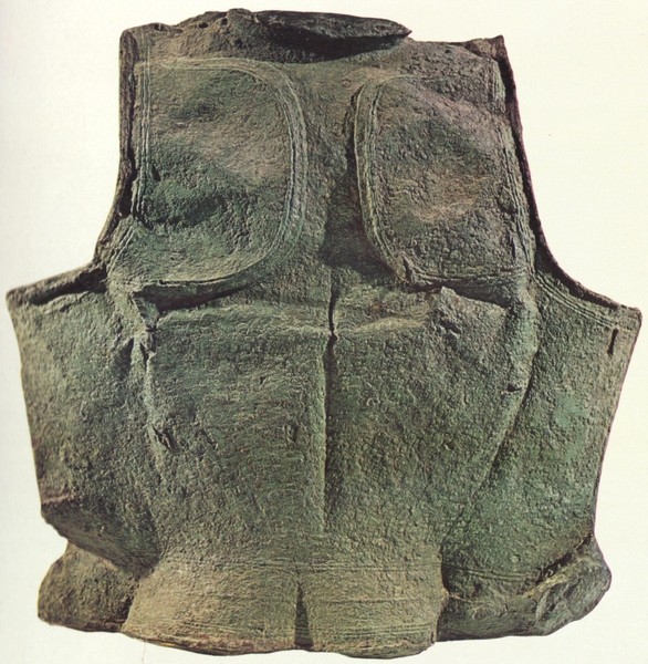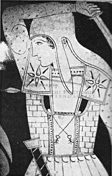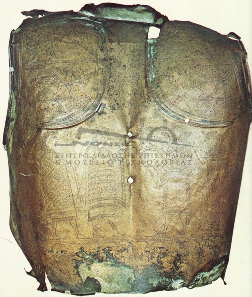 | Ιστορία Ελληνικού Έθνους, Κλασσικός Ελληνισμός(2) , 201, Τόμος Γ2, Εκδοτική Αθηνών 2000 Οπίσθιο τμήμα θώρακος του 7ου αι. Ολυμπία, Αρχαιολογικό Μουσείο. |