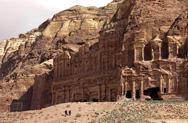 Πέτρα, για αυτή την πόλη που είναι λαξευμένη μέσα στο βράχο ο Τζον Μπέργκον έδωσε το χαρακτηρισμό «Η ροδοκόκκινη πόλη που είναι αρχαία σαν το μισό το χρόνου”. Η αρχιτεκτονική της πόλης έχει έντονη την επίδραση των Ελλήνων και των Ρωμαίων, ειδικά των τελευταίων που αφού την κατέκτησαν ήθελαν να αφήσουν το στίγμα της εξουσίας τους και σε αυτή τη γωνία της αυτοκρατορίας τους. Τα καλύτερα διατηρημένα κτίρια είναι το θησαυροφυλάκιο ή αλλιώς Χαζνέ Φαραούν με μια πρόσοψη ύψους 40 μέτρων, το Μοναστήρι, το ρωμαϊκό θέατρο χωρητικότητας 15000 ατόμων, τα λουτρά, ο εμπορικός δρόμος, ο βασιλικός τάφος της Υδρίας, ο τάφος του Ρωμαίου στρατιώτη και η πέτρα Ουμ-αλ-Μπιγιάρα.