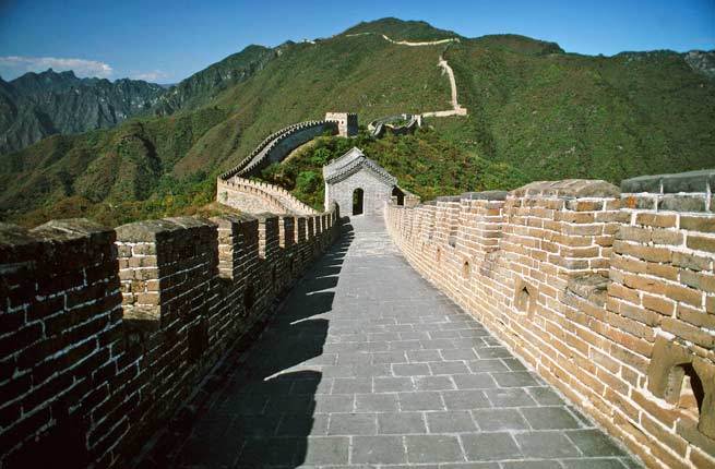 Είναι κινεζική οχύρωση που κατασκευάστηκε από το τέλος του 14ου αιώνα μέχρι την αρχή του 17ου αιώνα, κατά τη διάρκεια της δυναστείας Μινγκ, προκειμένου να προστατευθεί η Κίνα από τις επιδρομές από τις μογγολικές και τουρκικές φυλές. Το τείχος συμπληρώνεται από αμυντικούς πύργους-παρατηρητήρια, στους οποίους οι υπερασπιστές των τοίχων μπορούσαν να υποχωρήσουν, σε περίπτωση που βρισκόταν σε δυσχερή θέση. Κάθε πύργος διαθέτει σκάλες και εισόδους ειδικά σχεδιασμένες, έτσι ώστε να προκαλείται σύγχυση στους επιτιθέμενους. - Μεγάλος Κοραλλιογενής Ύφαλος