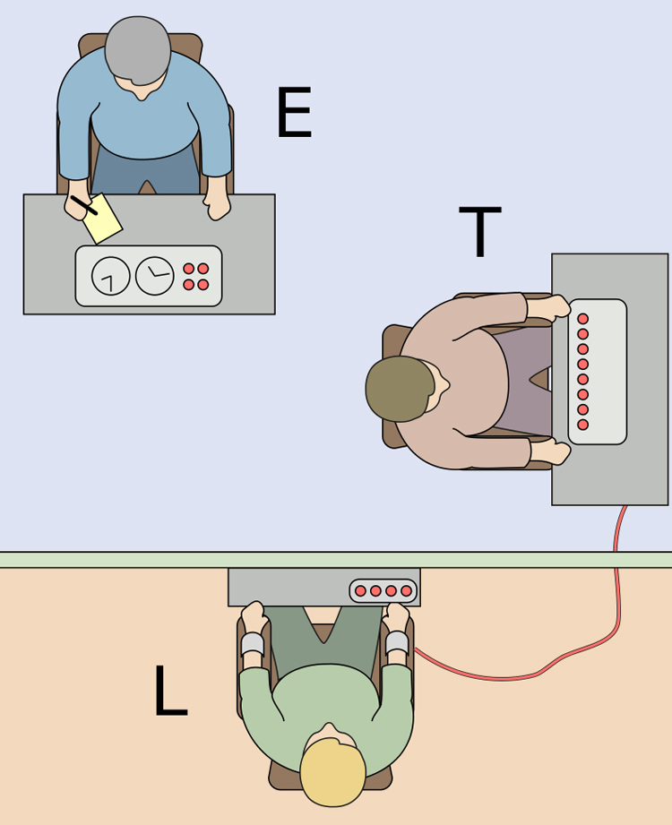 Ο πειραματιστής ενημέρωνε μάλιστα τα υποκείμενα πως στο άλλο δωμάτιο ο εκπαιδευόμενος ήταν δεμένος στην ηλεκτρική καρέκλα, ώστε να μην μπορεί να το σκάσει. Ο εκπαιδευτής πίστευε φυσικά πως για κάθε λάθος απάντηση, ο εκπαιδευόμενος δεχόταν στην πραγματικότητα τα ηλεκτροσόκ, κάτι που πιστοποιούνταν άλλωστε από τις αντιδράσεις του ηθοποιού, από την απλή δυσφορία στα λίγα ηλεκτροσόκ μέχρι και τις κραυγές και τα ουρλιαχτά πόνου στα υψηλά βολτ. Και τις εκκλήσεις του να σταματήσουν τα βασανιστήρια και τον αφήσουν ελεύθερο.