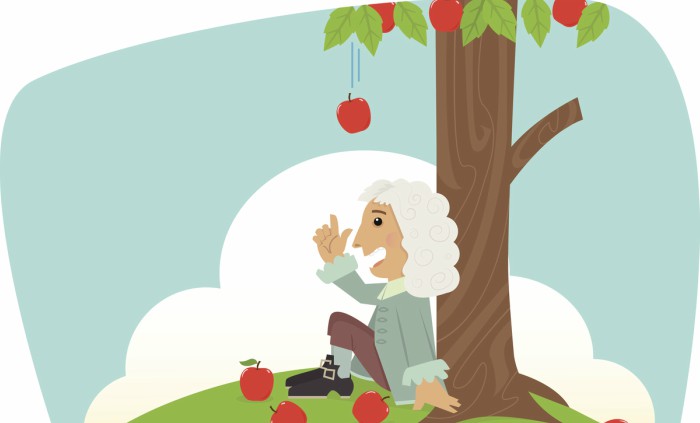 Θεωρητικά, όπως υποδείκνυε κι εκείνο το παλιό βιβλίο φυσικής σε μια ζωγραφιά του, ο Νεύτωνας δεν είχε την παραμικρή ιδέα για τη βαρύτητα, απλά έκατσε κάτω από ένα δέντρο για να σκεφτεί την πρώην του (τον βασάνιζε η κάρχια).